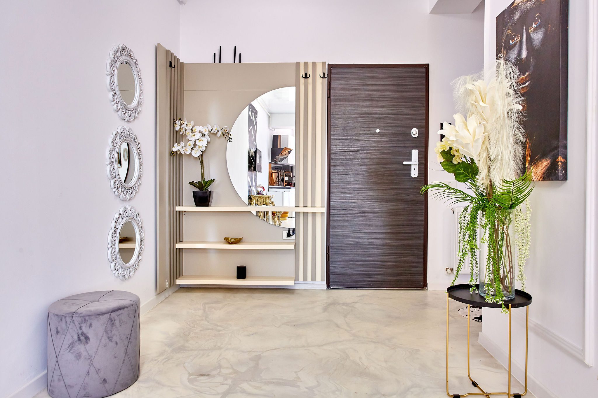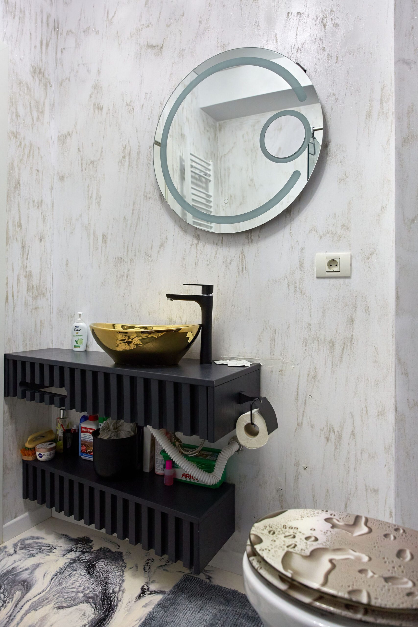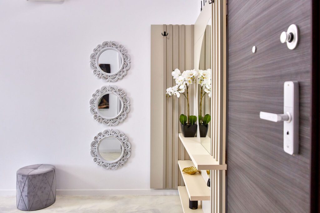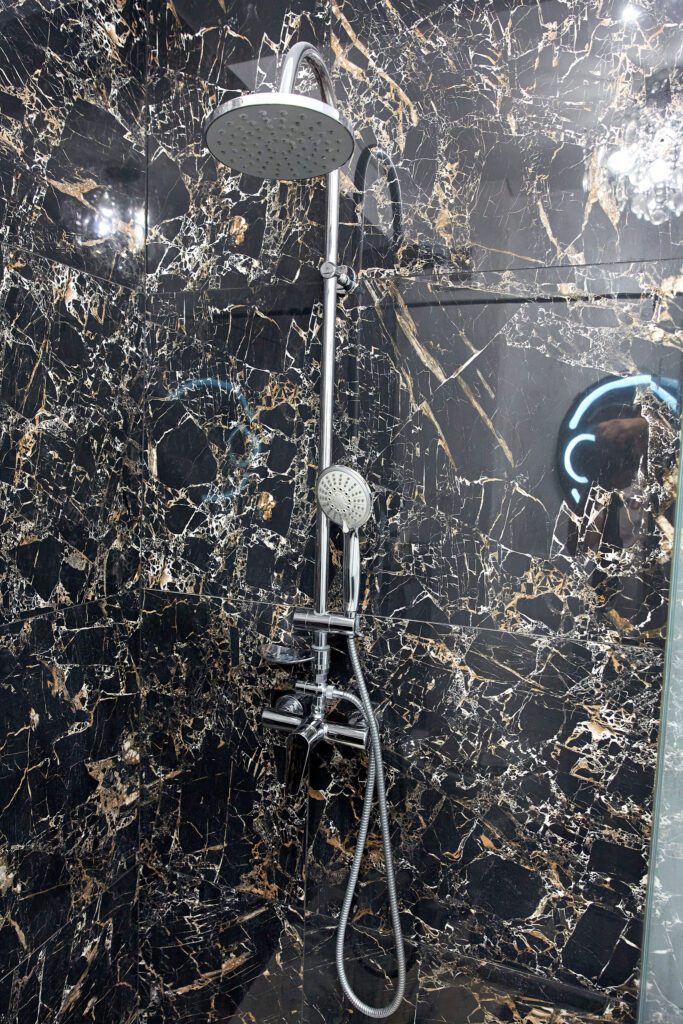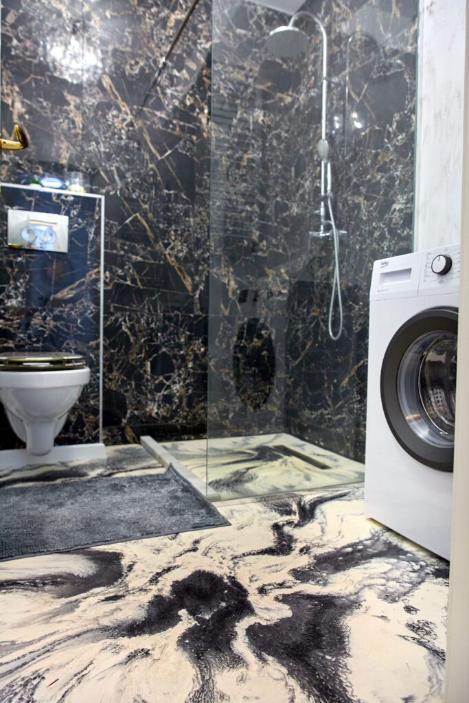 Baie: Baia, un exemplu de modernism și lux, este dotată cu o cabină de duș walk-in și faiantă neagră cu aspect de marmură care emană opulență. Masina de spalat modernă adaugă o notă practică, făcând din rutina zilnică o experiență plăcută.