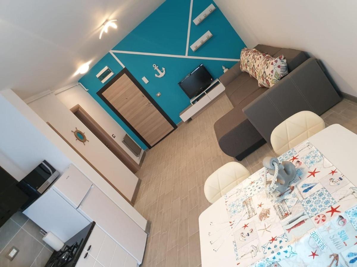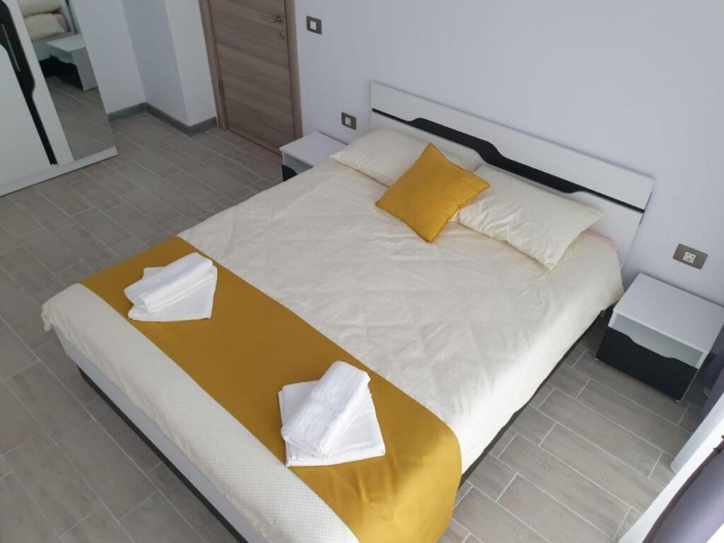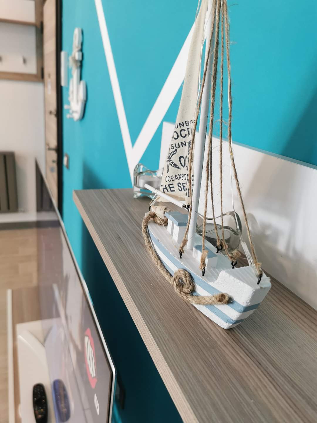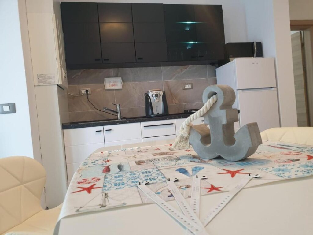 Fiind compus din doua camere, acces din fiecare pe terasa – cu vederea spre mare, apartamentul ofera capacitate de gazduire pentru 4 persoane, avand un pat matrimonial in dormitor si o canapea extensibila in living.