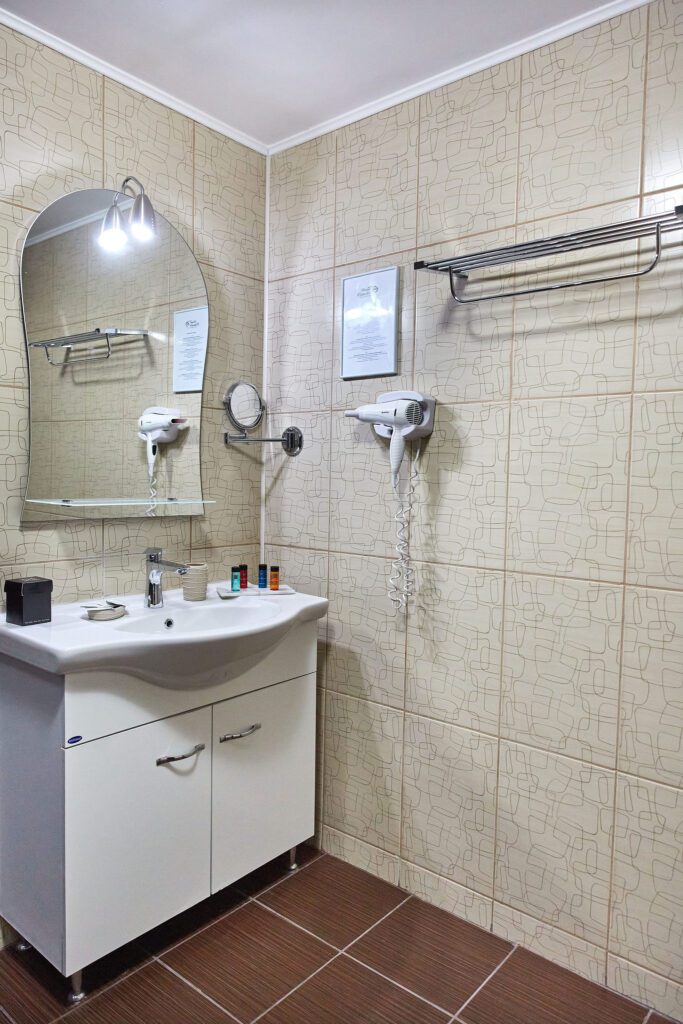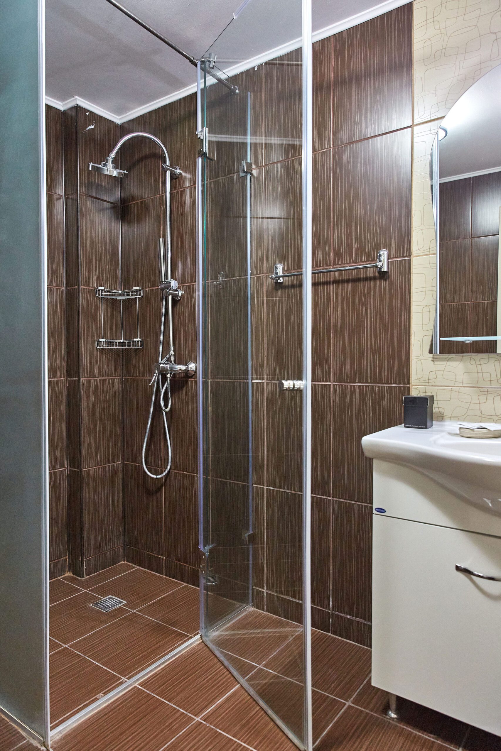 Baia este un spațiu modern, cu faianta în nuanțe de maro și bej, ce îmbină eleganța cu funcționalitatea. Dusul spațios promite momente de răsfăț, în timp ce detaliile cromatice aduc un plus de căldură și rafinament.