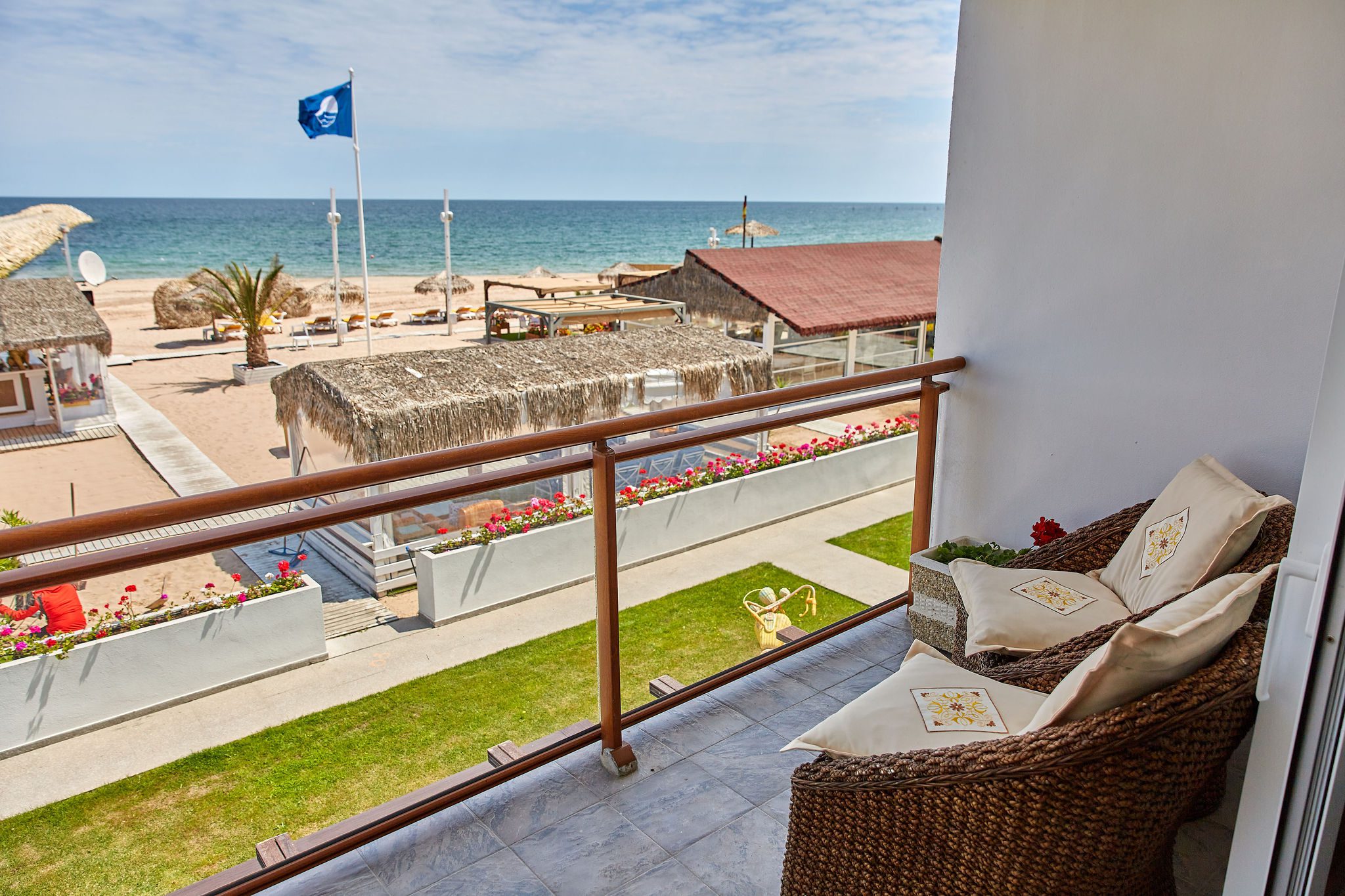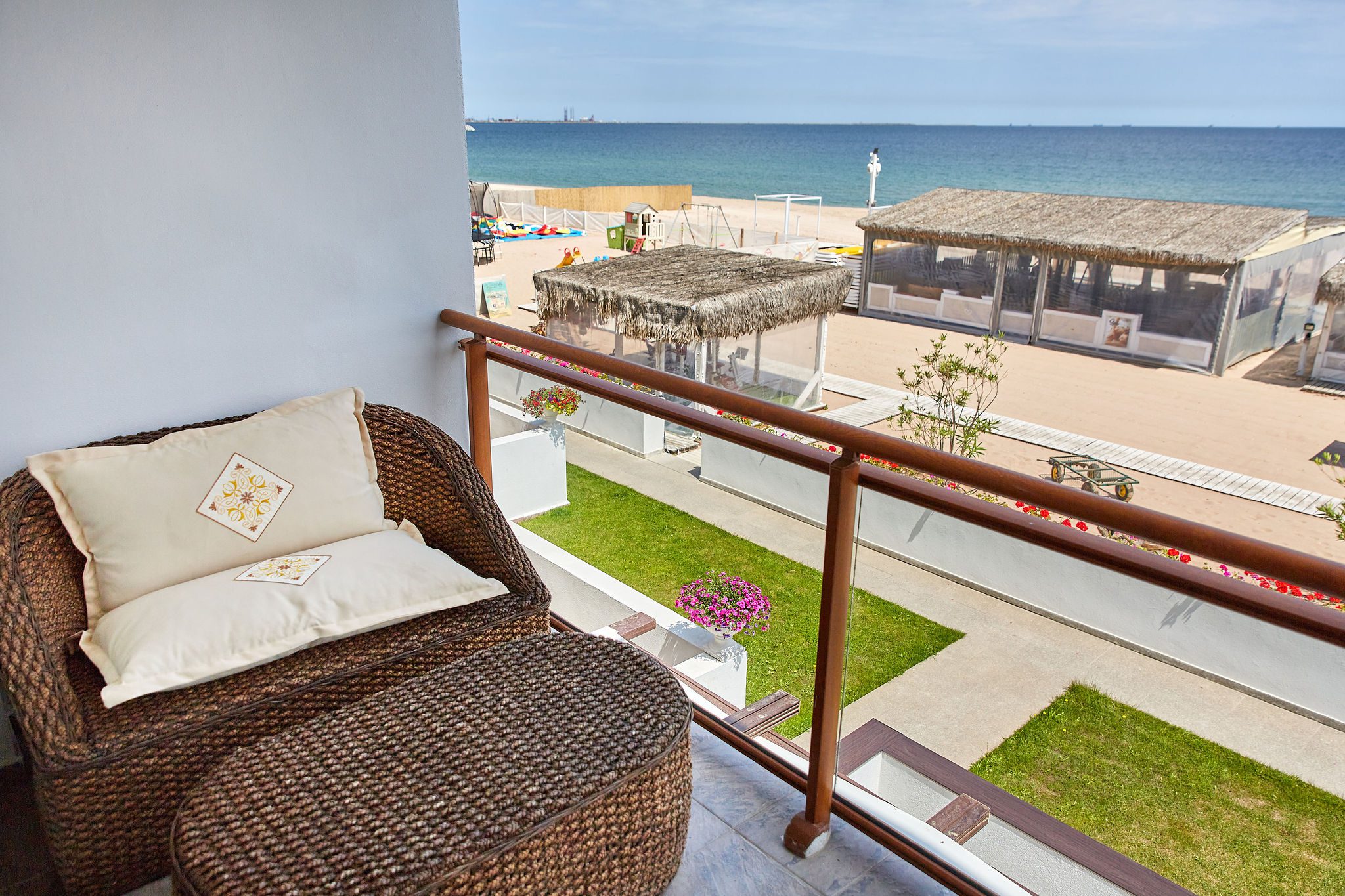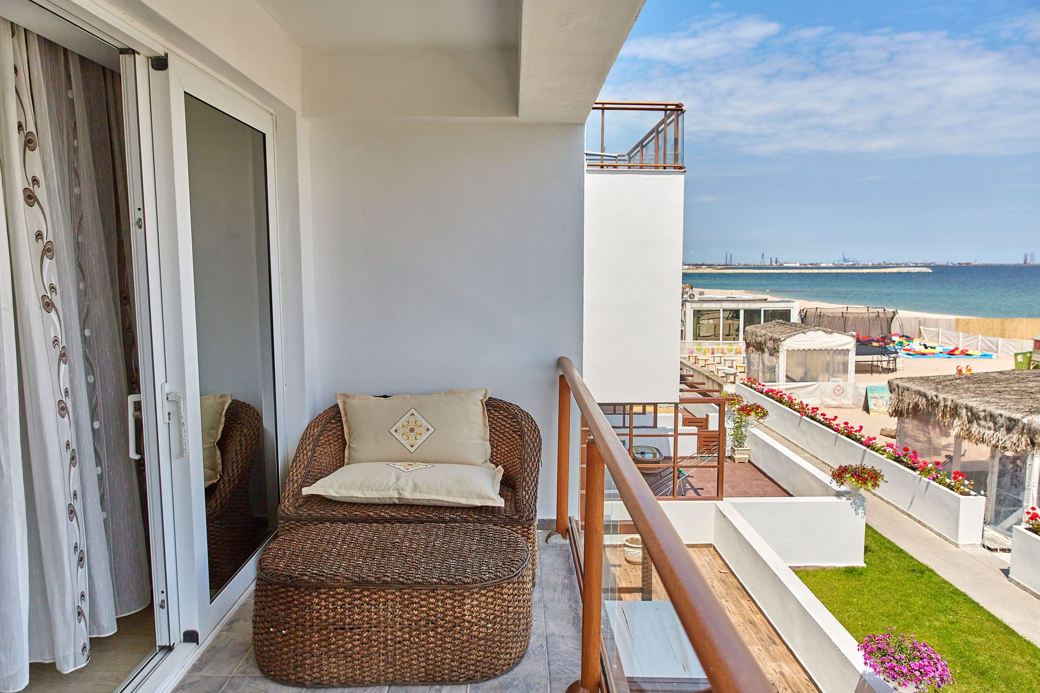 Balconul este fereastra către paradis. Oferind o vedere frontală superbă către mare, acesta este locul ideal pentru a savura o cafea de dimineață sau un pahar de vin seara. Mobilierul este ales cu grijă, oferind confort și estetică, în timp ce briza mării adaugă un plus de prospețime.