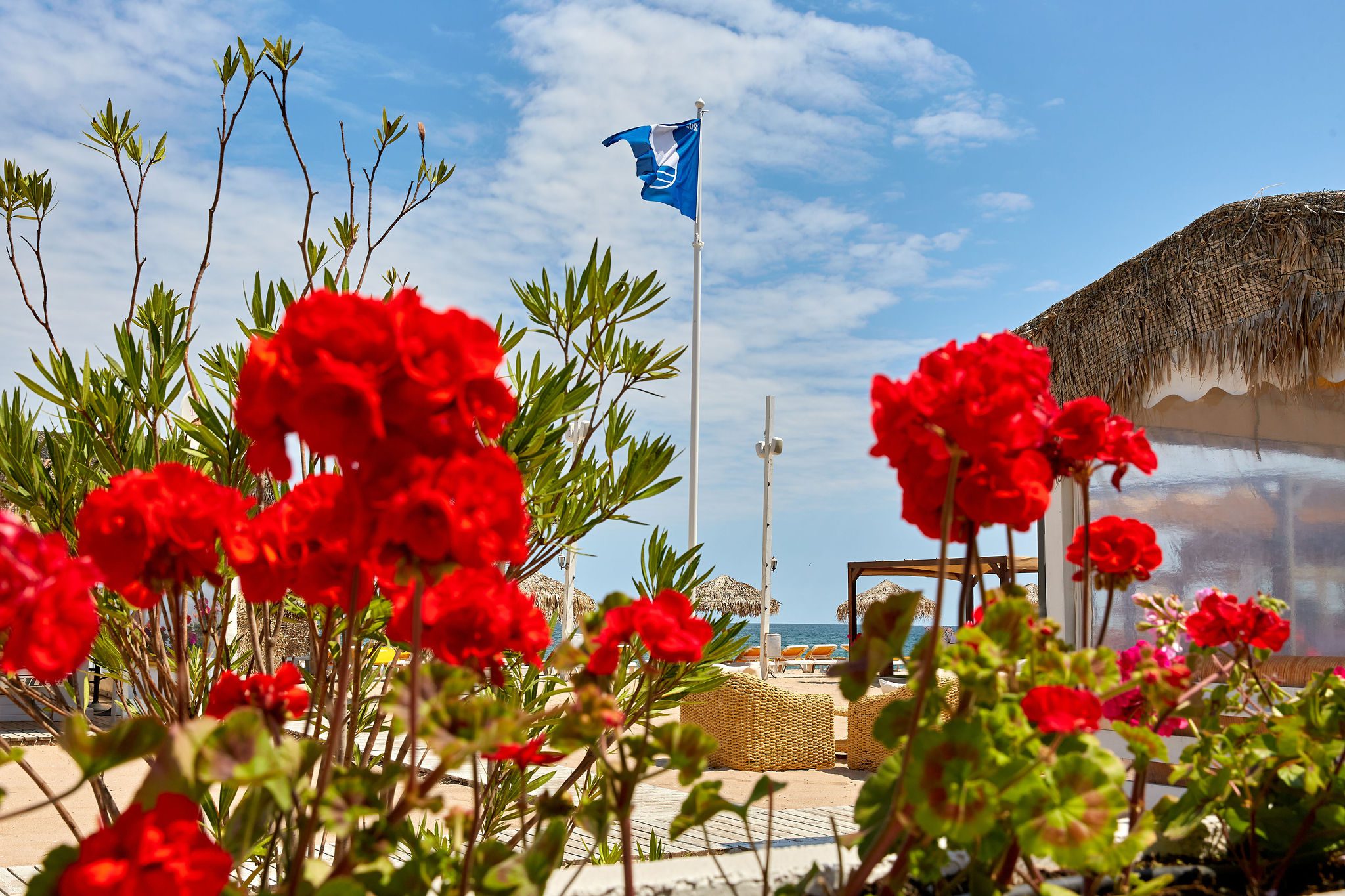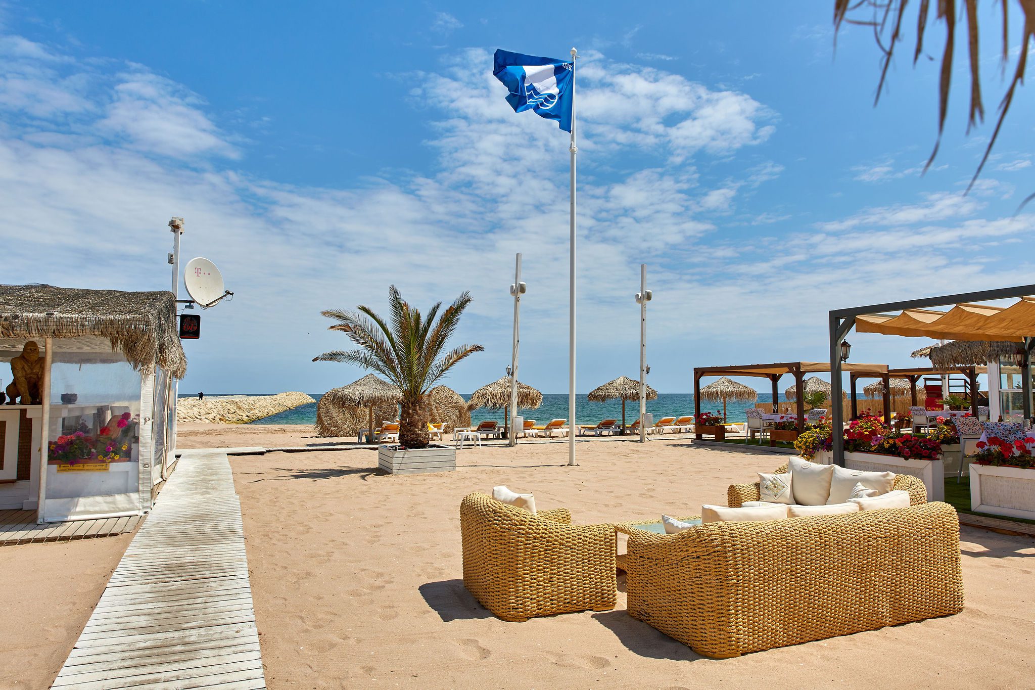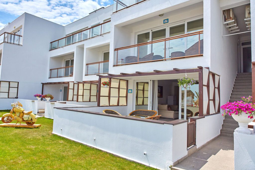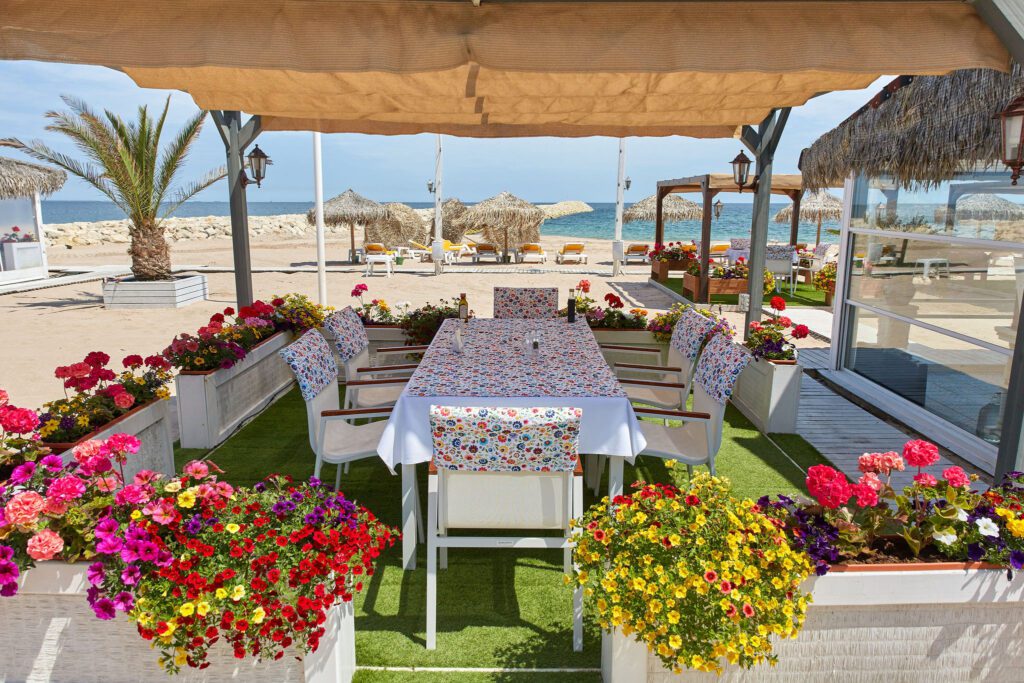 Balconul este cu adevărat special, oferind o priveliște directă către mare, fiind situat chiar pe plajă. Este locul perfect pentru a admira răsăritul sau apusul, având un mobilier ales cu grijă pentru a completa perfect atmosfera paradisiacă.
