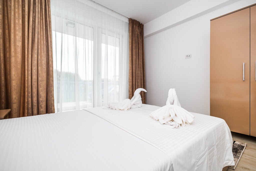 Balconul adaugă un plus de intimitate și relaxare, oferind un spațiu plăcut unde te poți bucura de o cafea dimineața sau o seară liniștită după o zi petrecută la plajă.