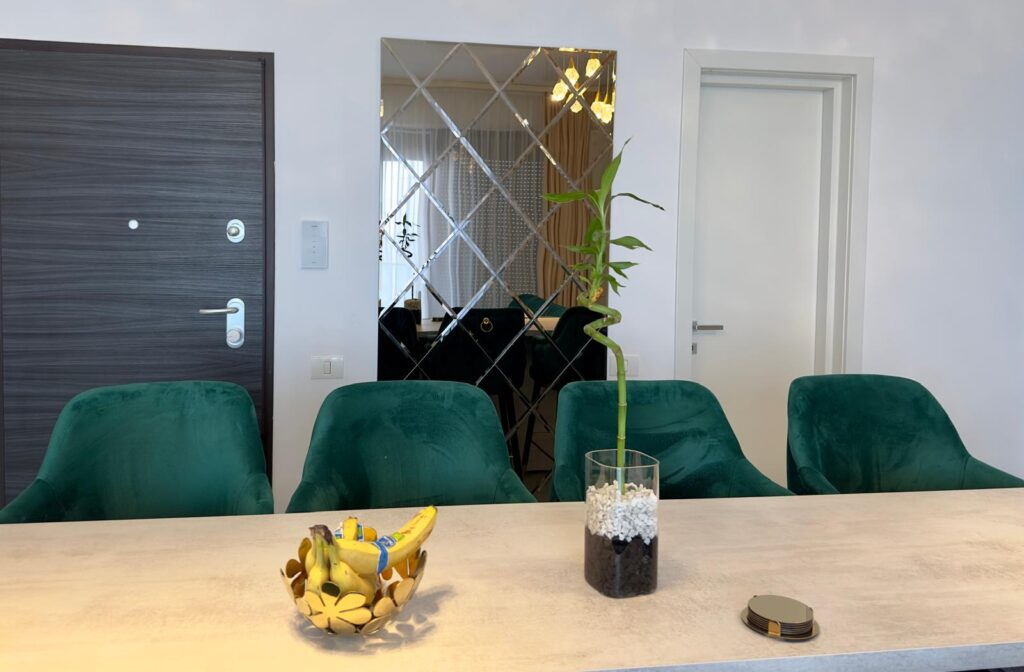 - Sistem de climatizare: Apartamentul dispune de un sistem modern de climatizare care asigură o temperatură optimă în orice sezon. Unitățile sunt discrete și pot fi controlate individual pentru fiecare cameră.