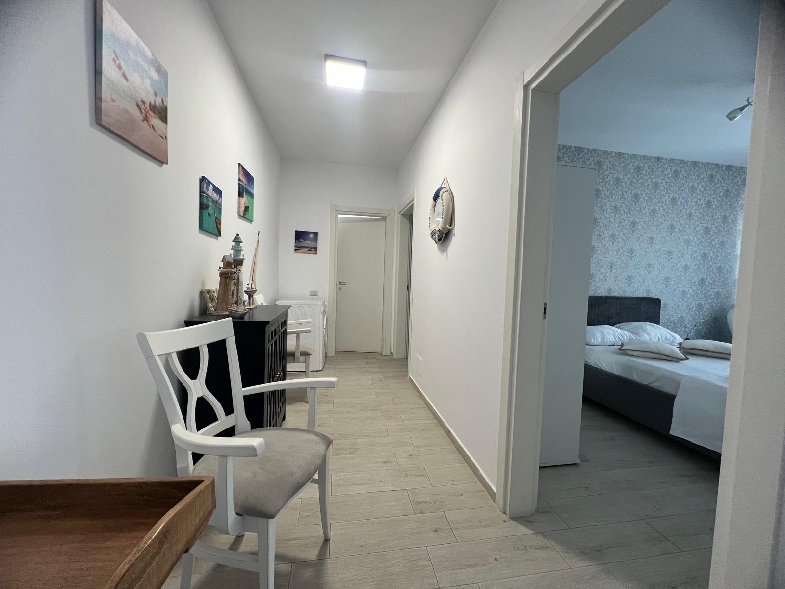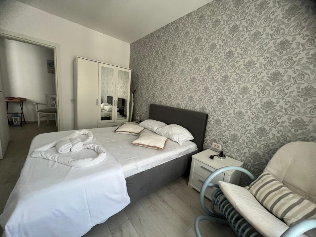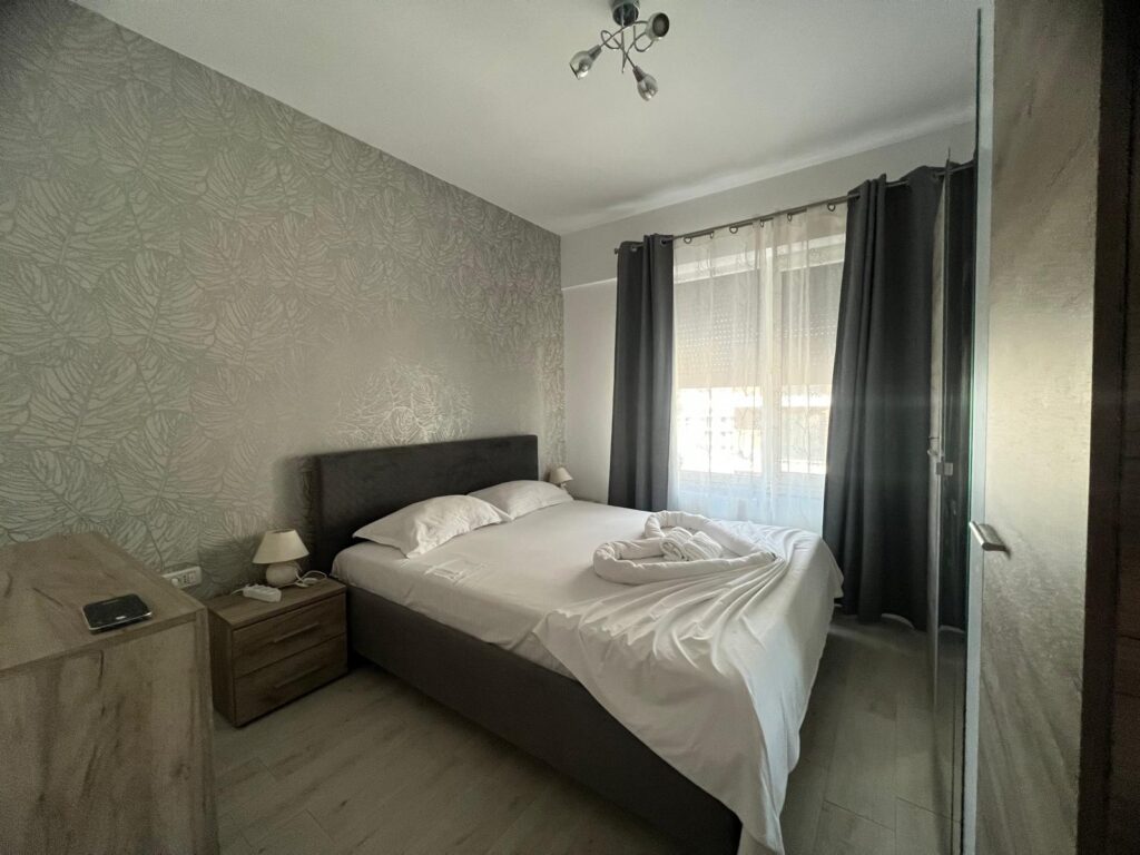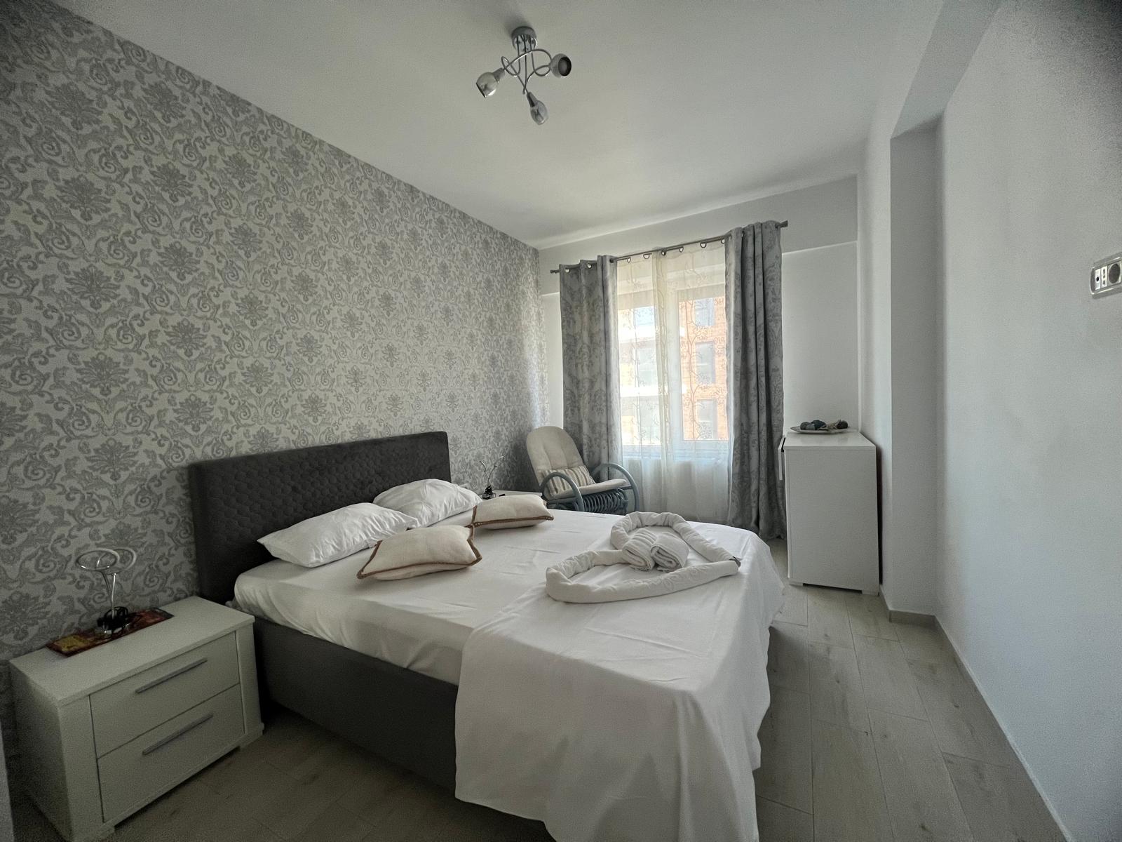 Cele două dormitoare sunt amenajate cu atenție la detalii, oferind un echilibru ideal între eleganță și confort. Paturile matrimoniale mari, cu lenjerie albă impecabilă, dulapurile spațioase și televizoarele din fiecare cameră contribuie la starea de relaxare și la sentimentul de „acasă”.