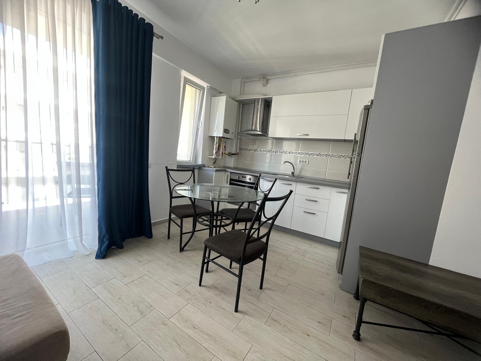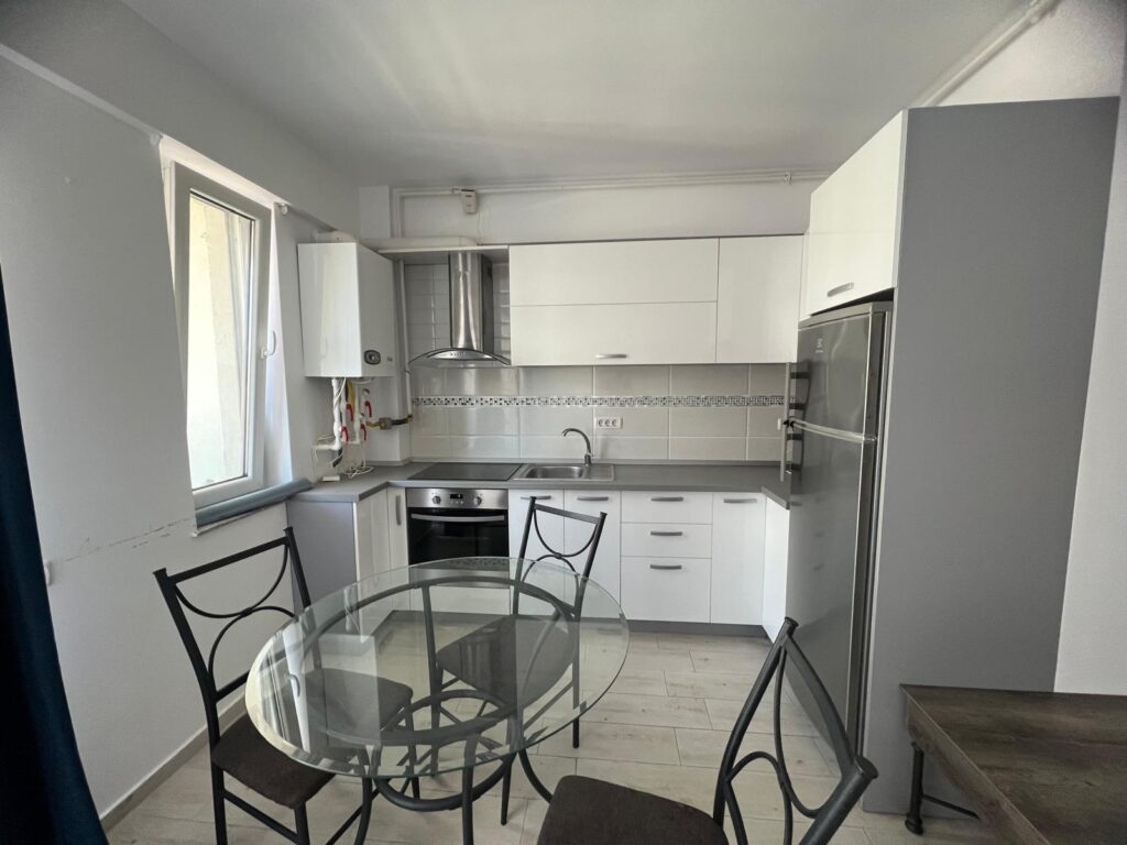 Livingul open-space impresionează prin atmosfera sa luminoasă și spațioasă, fiind locul perfect pentru momente de relaxare în familie sau alături de prieteni. Canapeaua extensibilă asigură confort suplimentar, iar televizorul cu ecran plat completează perfect serile petrecute în interior. Bucătăria integrată în living este modernă, complet utilată, oferind toate facilitățile necesare pentru gătit sau servirea meselor într-un cadru plăcut și aerisit.