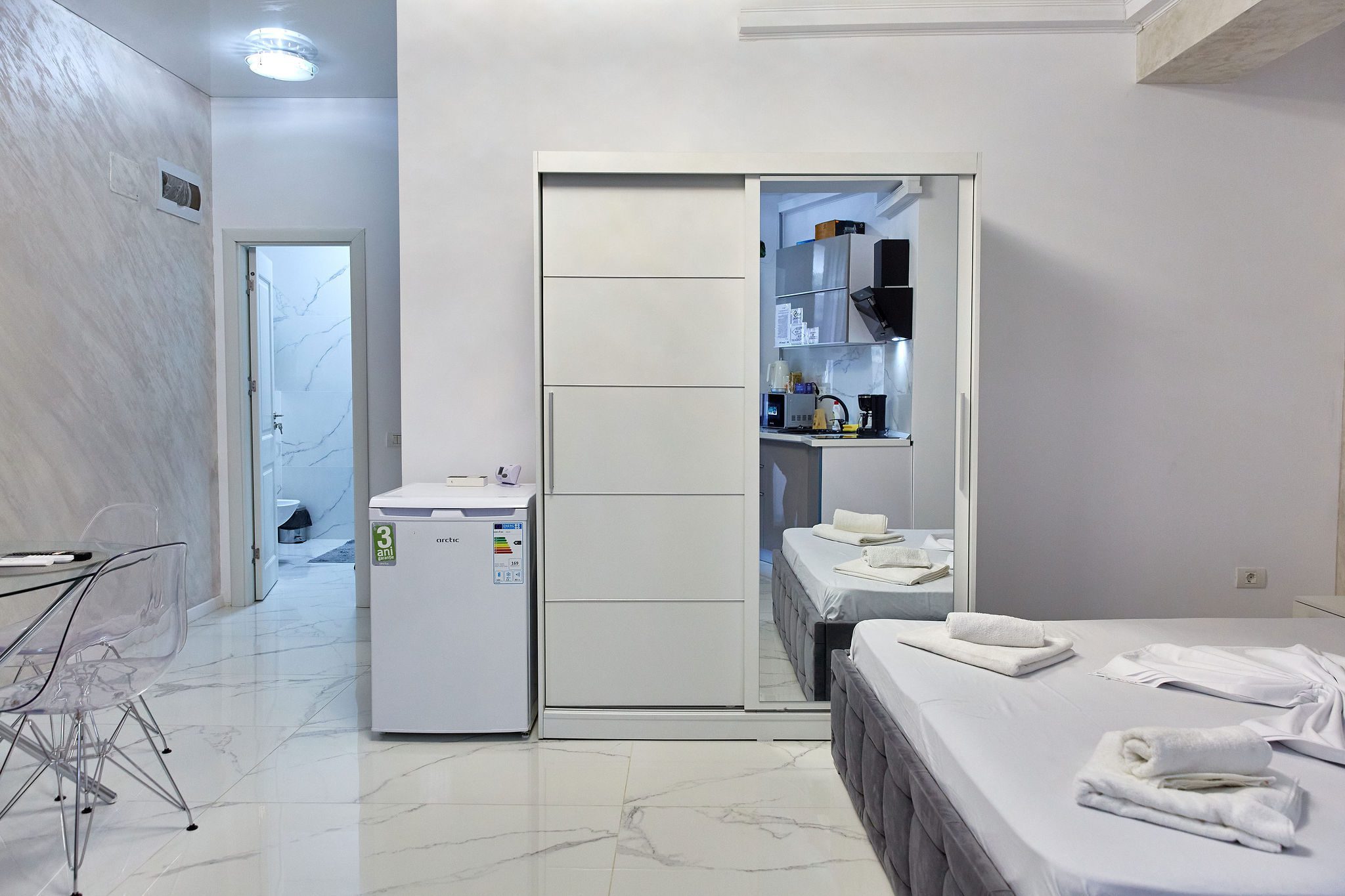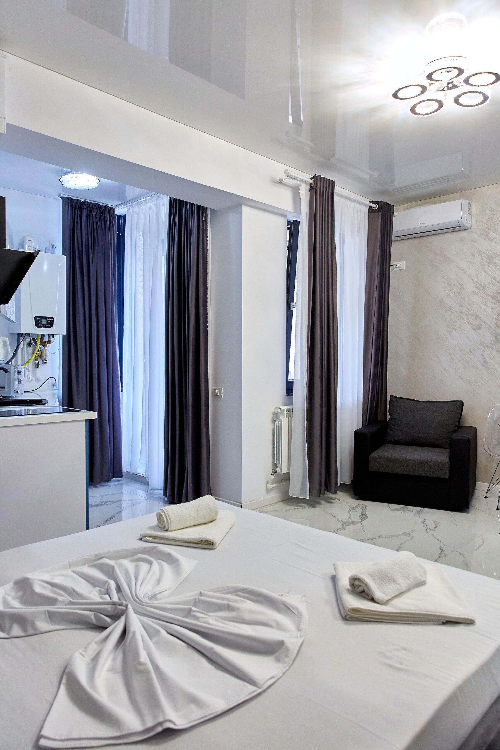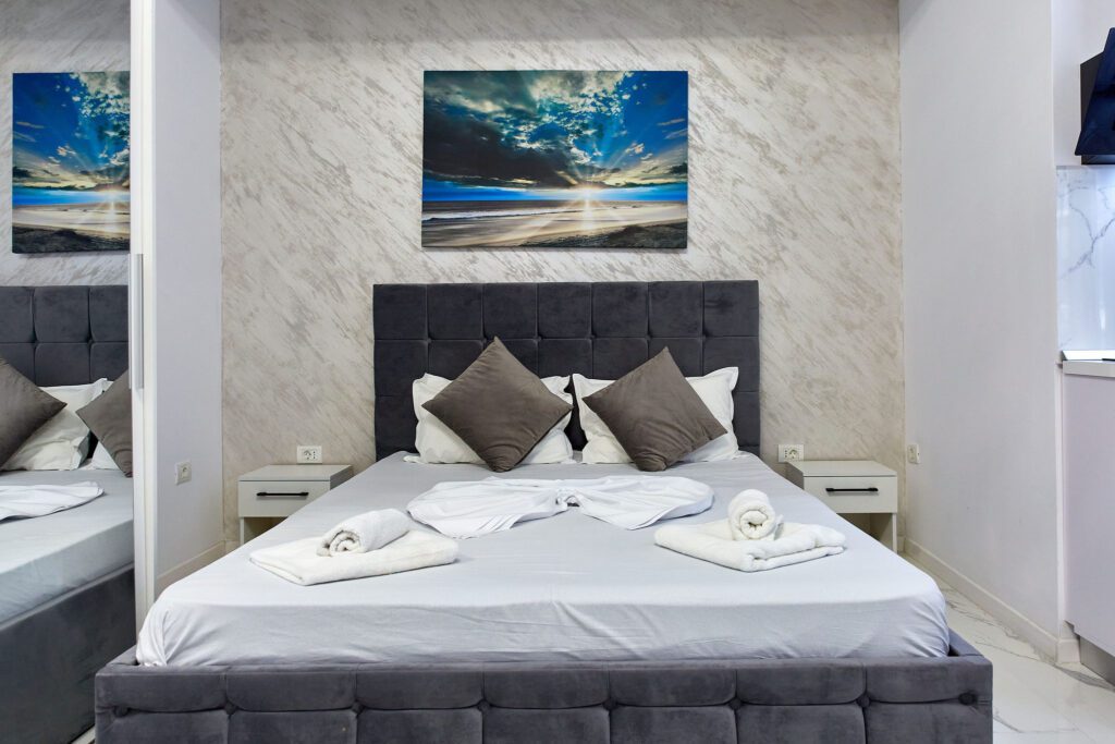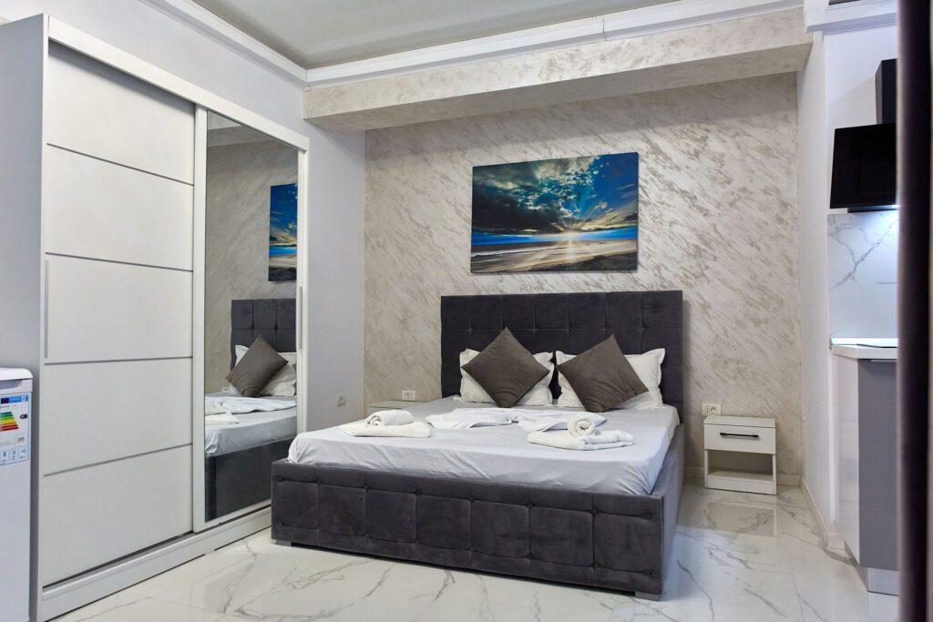 Studio “Lotus” oferă o atmosferă contemporană și confortabilă, unde designul modern și finisajele elegante se întâlnesc pentru a crea un spațiu plăcut și funcțional.