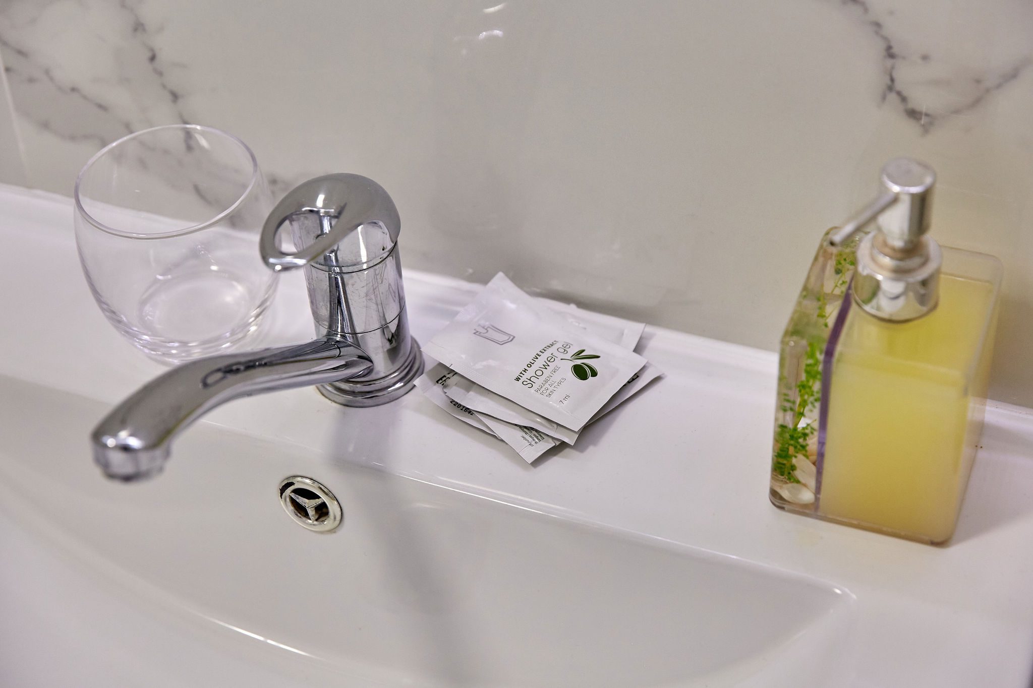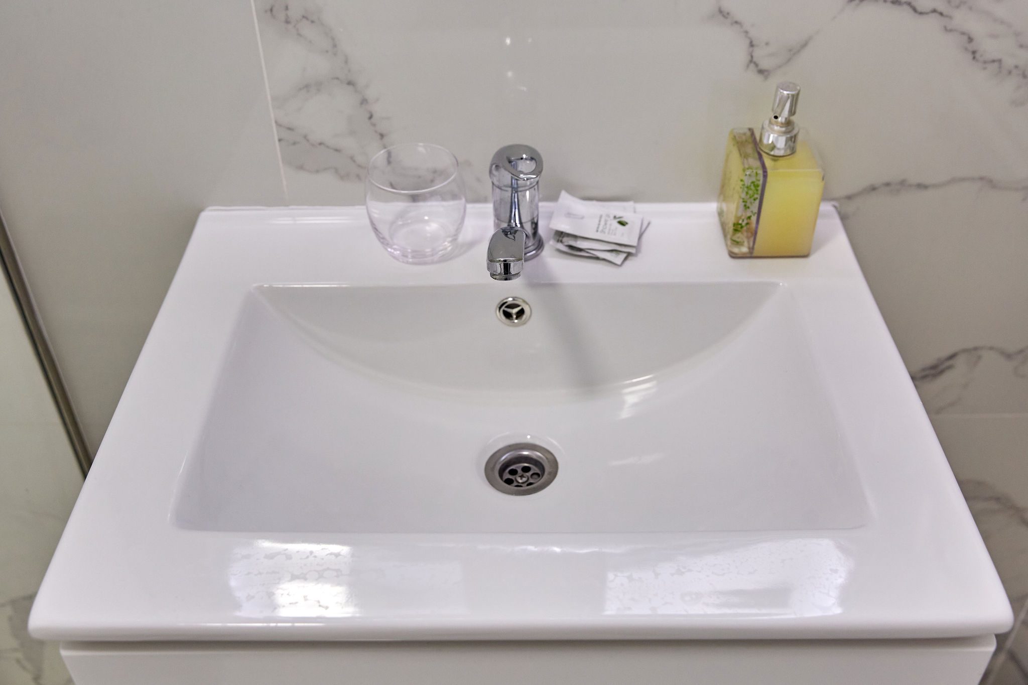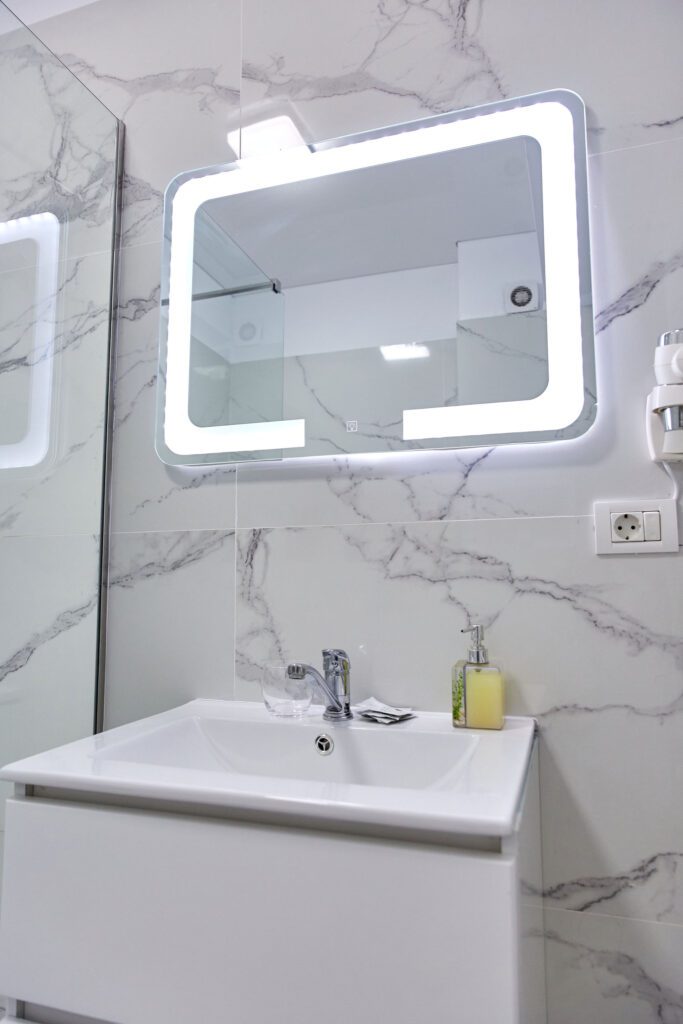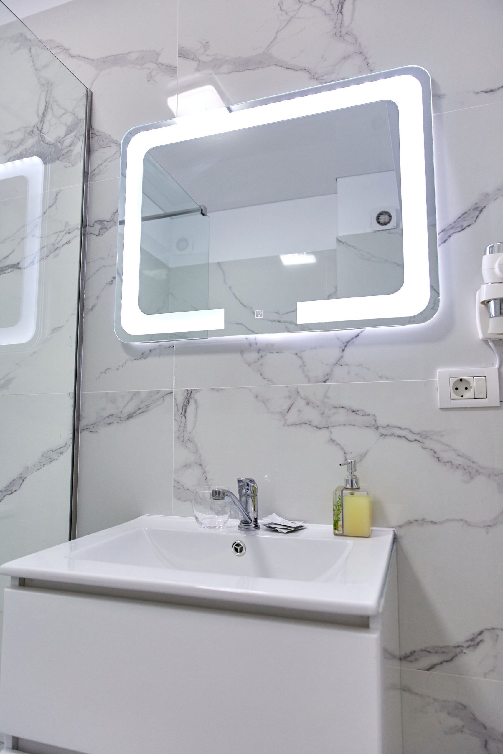 Baie: Baia impresionează prin faianta în stil marmură și dispune de un duș walk-in modern. Finisajele de calitate completează aspectul spațios și luxos al băii.