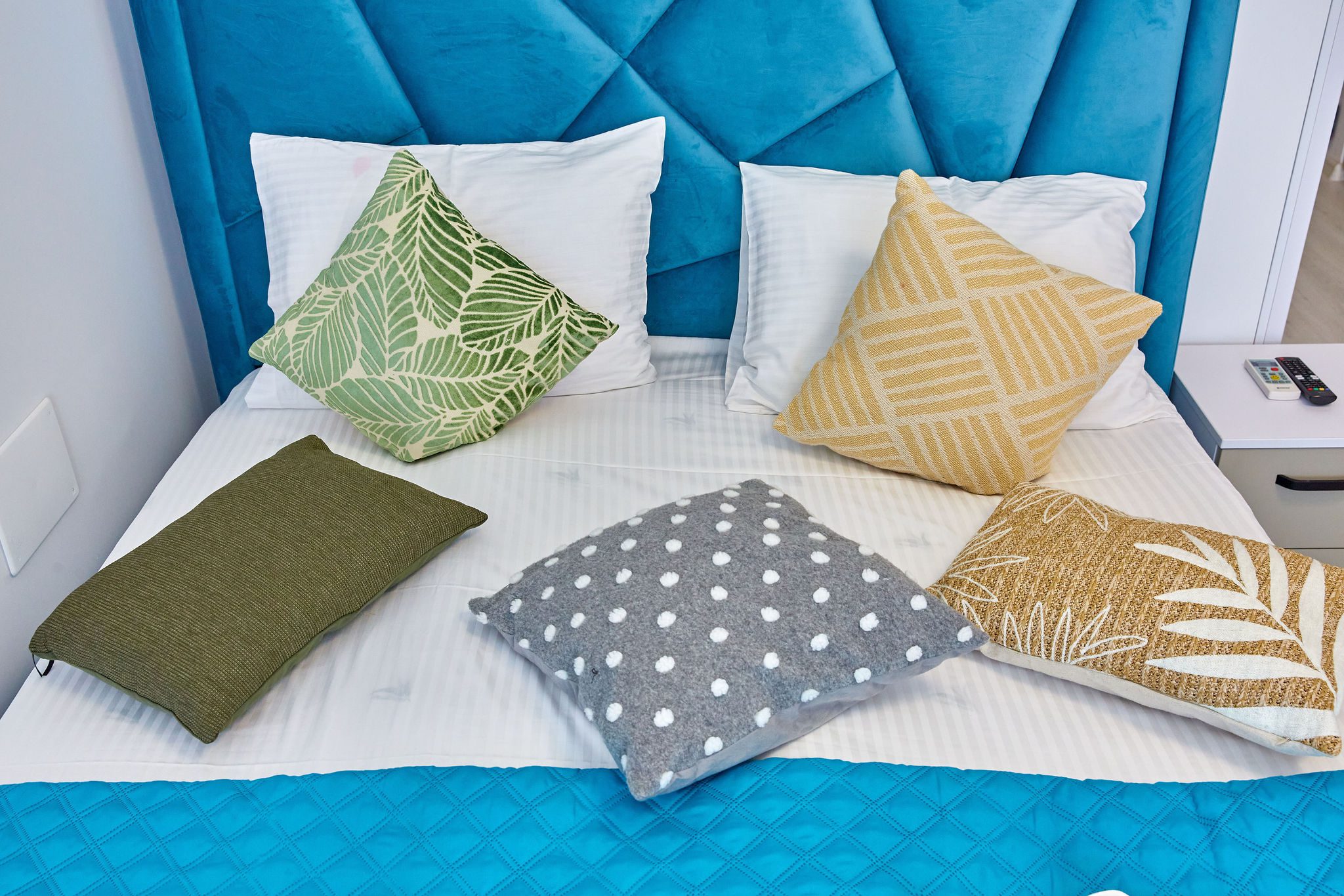 Studio Madagascar din Tomis Villa este o invitație la evadare în confort și liniște, cu accente care aduc omagiu peisajului marin înconjurător.