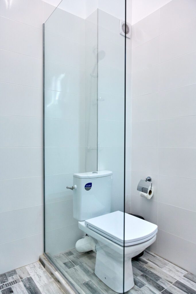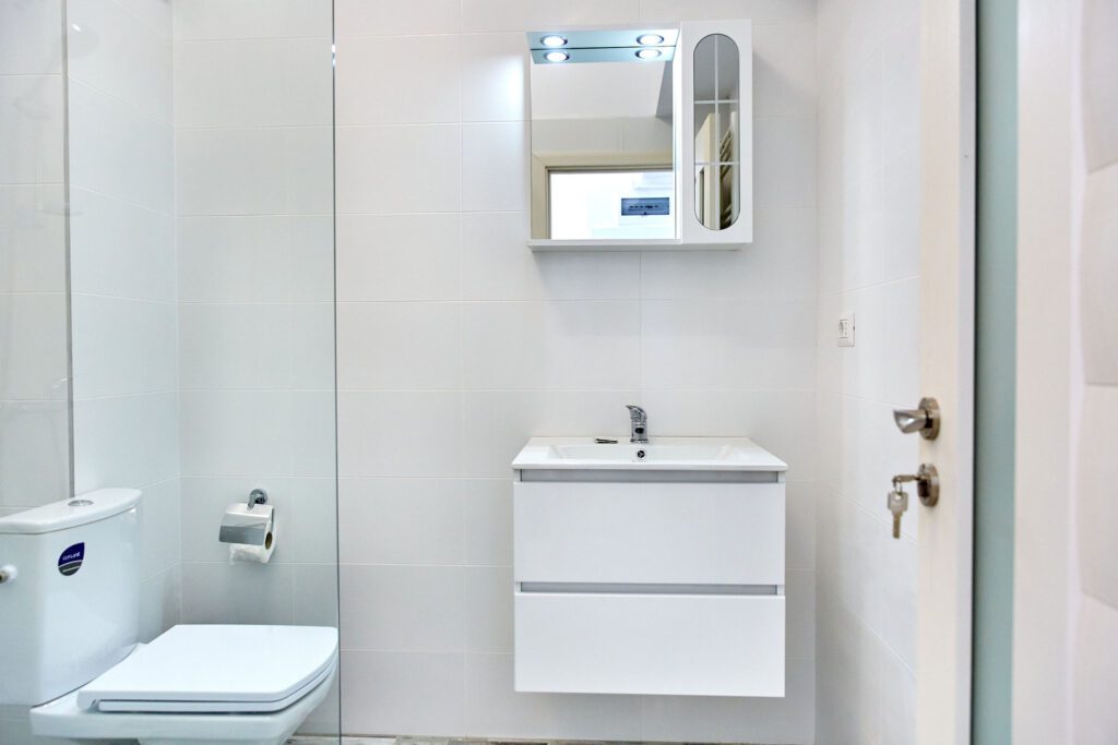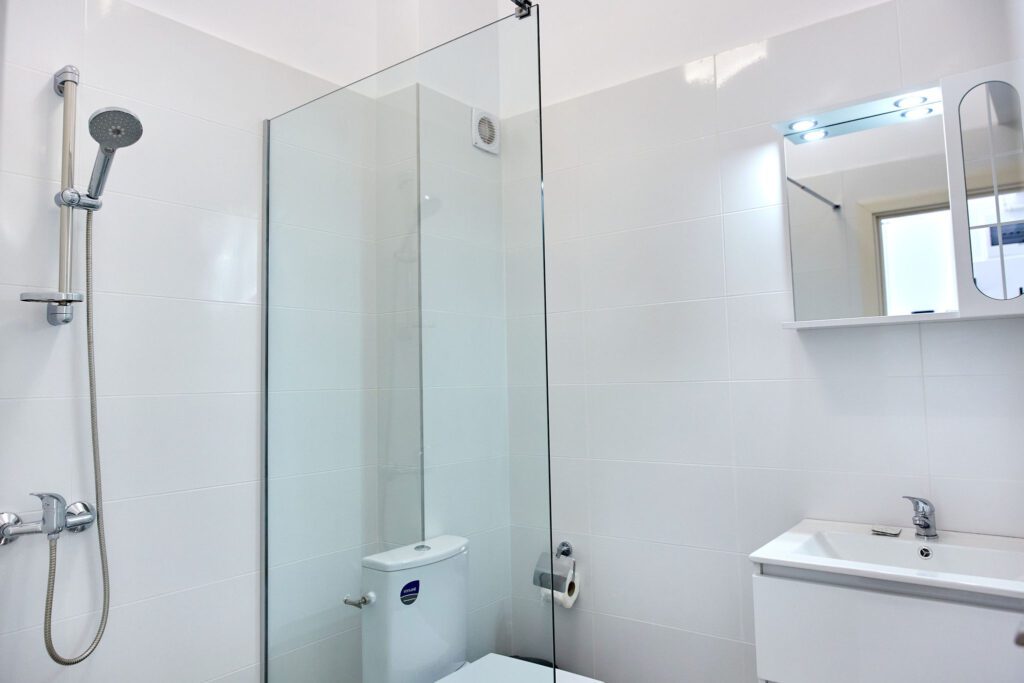 Baia este un model de eficiență și stil, cu un duș bine proiectat care promite o experiență revitalizantă, în timp ce mobilierul alb adaugă un accent de curățenie și prospețime. Finisajele și instalațiile sunt alese pentru a completa experiența de confort total.