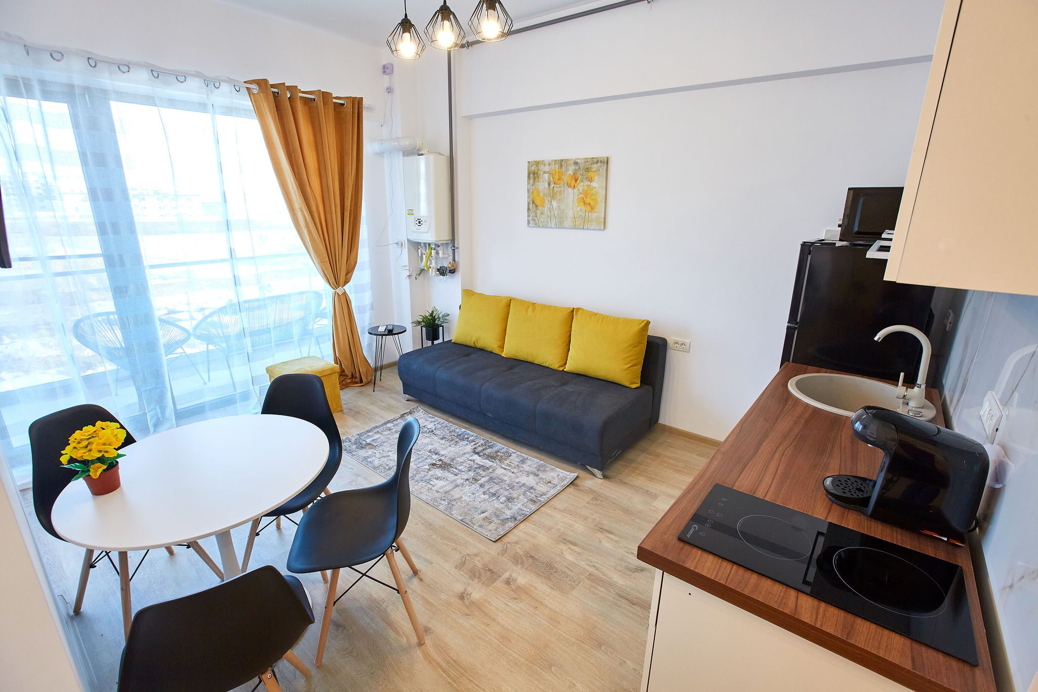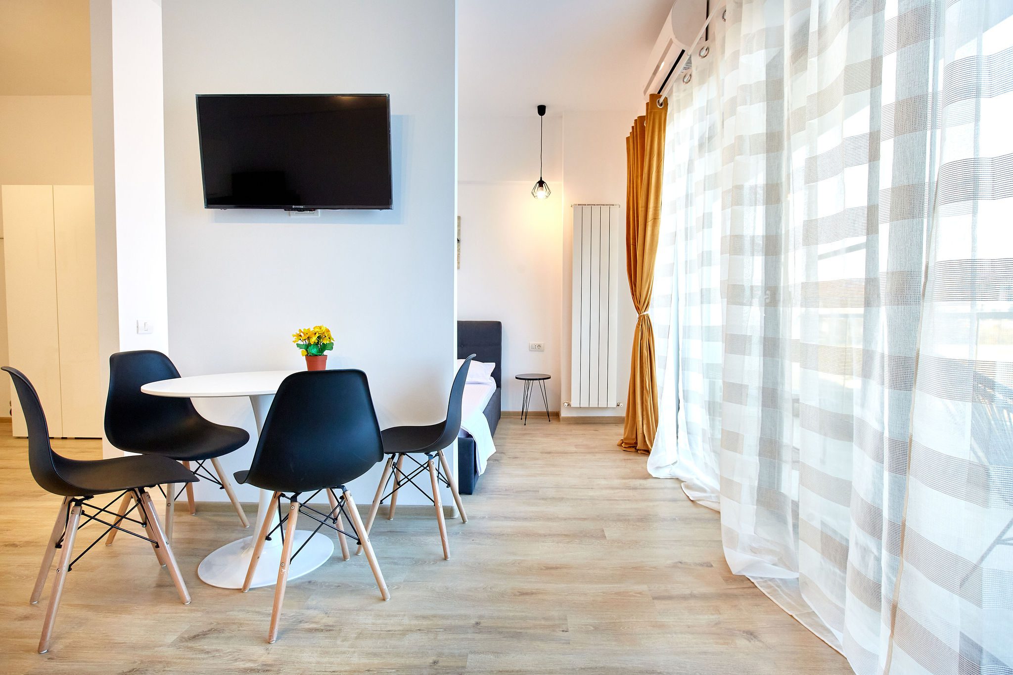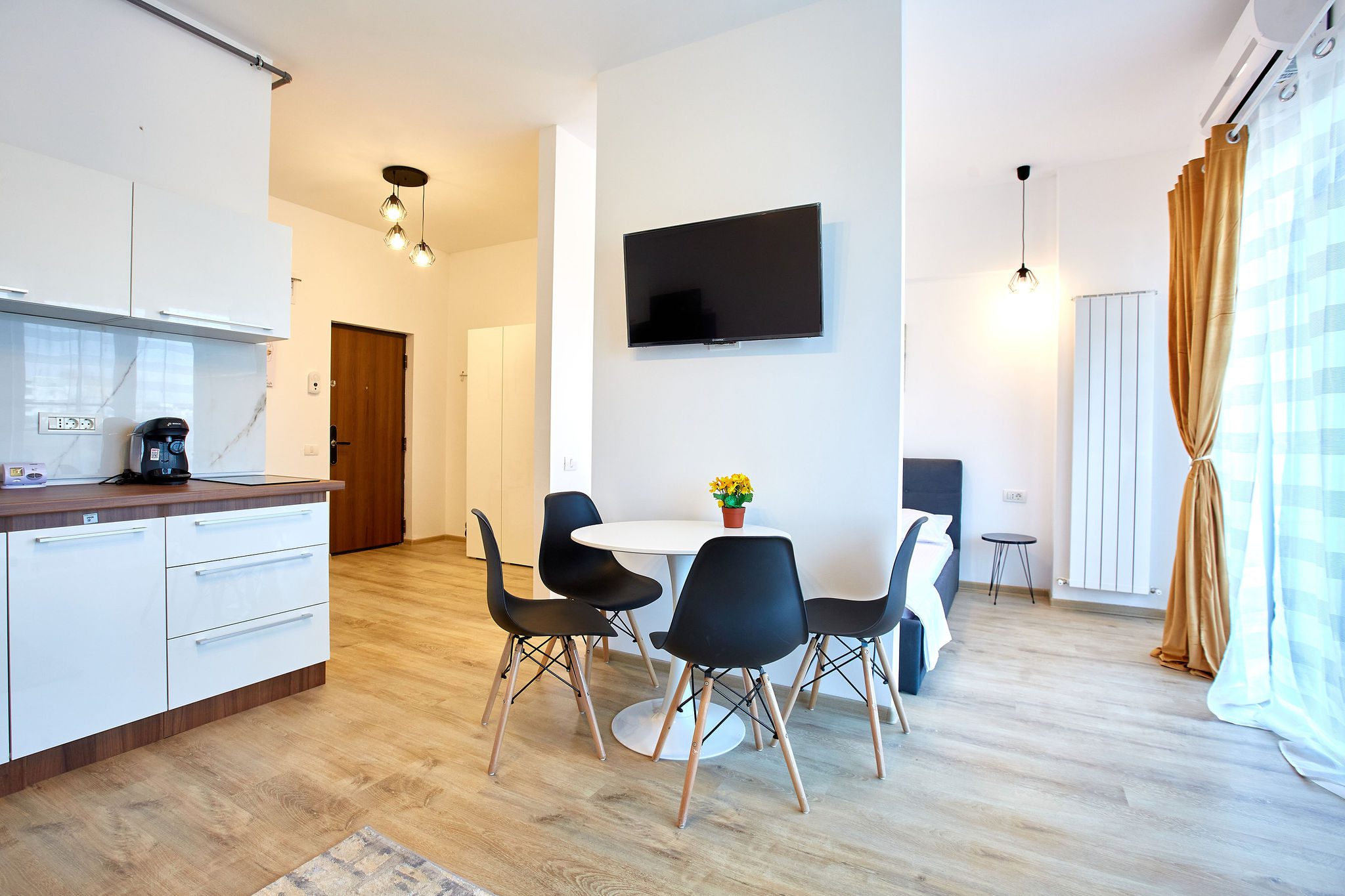 Studio-ul Sunrise 3 Tomis Villa este spatios, are pat matrimonial și canapea extensibila, baie si bucatarie, astfel, capacitatea de gazduire fiind de 4 persoane.